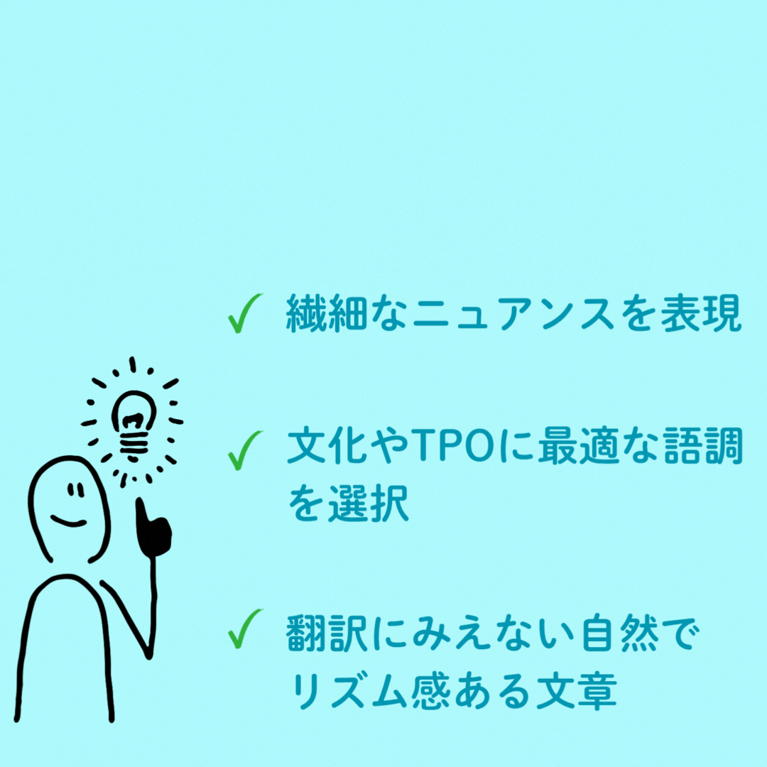 文化や価値観に寄り添う表現で、心に響く文章をお届けします。知識や経験の積み重ねがあるからこそ「伝えられるプロの翻訳」は、機械翻訳とは一線を画すものと考えています。